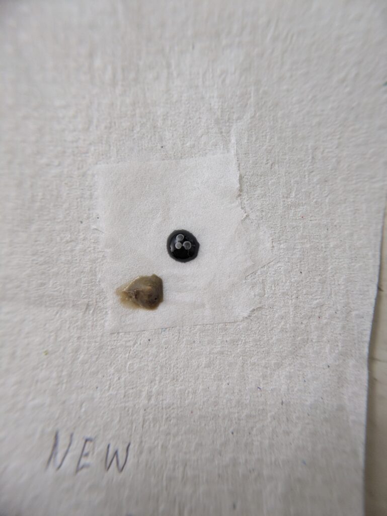 こちらは経過5分で「ふつうのグルー」表面に劣化が現れはじめました。