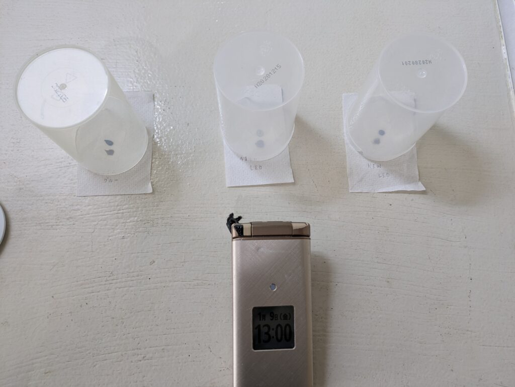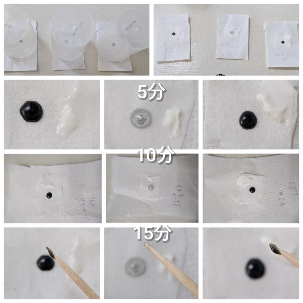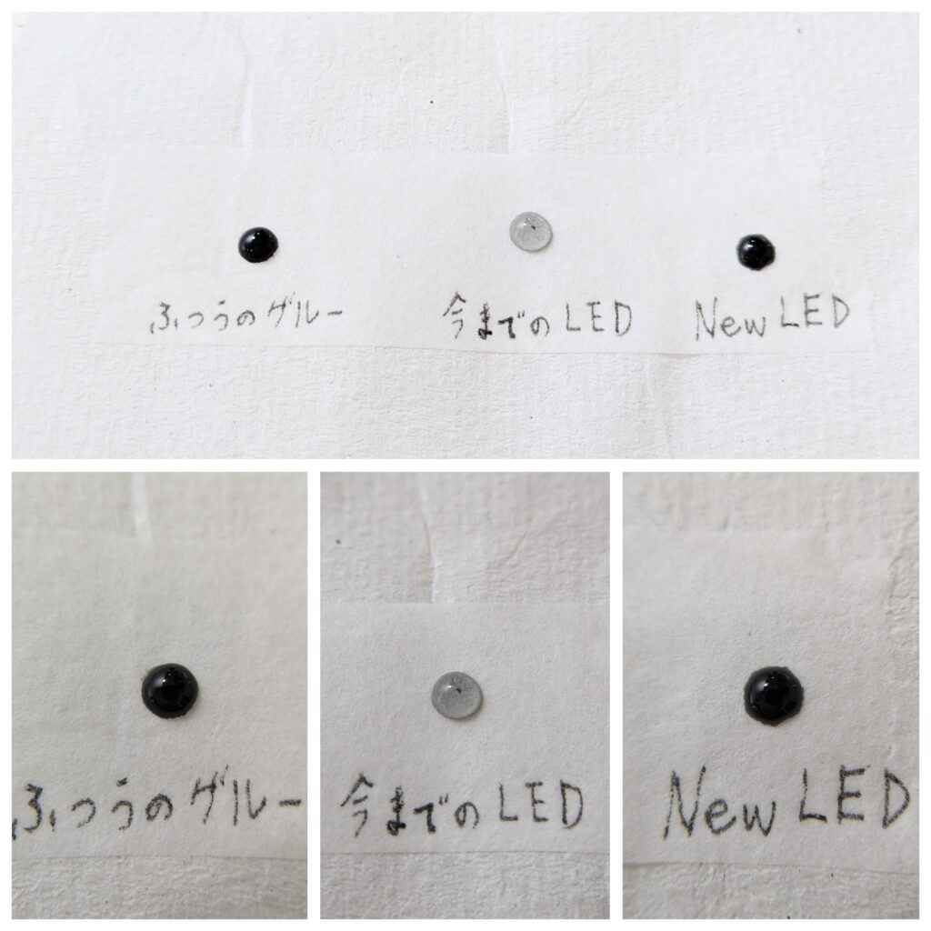 「モチが良く、なるべく黒さのあるLEDグルー」を求めて、さまざまなメーカーから取り寄せ、検証を重ねていました。